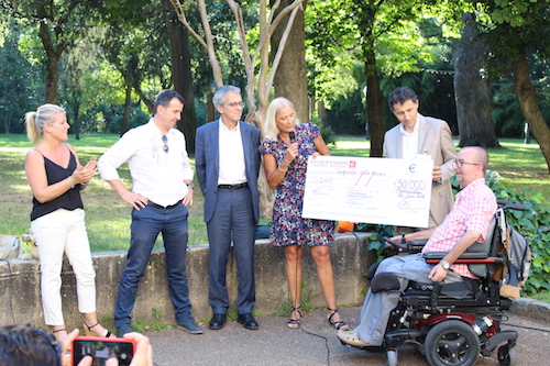 Lors de l’Assemblée Générale du GIHP Occitanie LR, mercredi 20 juin, en présence de 200 personnes, Madame Nicole BIGAS, Présidente de la Société Locale Pic-Ovalie de la Caisse d’Epargne Languedoc-Roussillon, a remis un chèque de 50 000 euros à Monsieur Thierry BALIX, Président du GIHP Occitanie Languedoc-Roussillon.